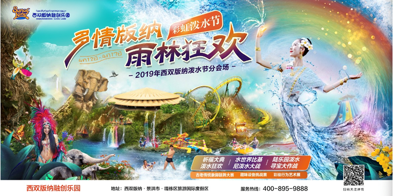 4月12日–4月15日,西双版纳将迎来一年一度的"东方狂欢节"——泼水节。泼水节是傣族人民的傣历新年节,每年从4月初到5月中旬,西双版纳傣族自治州各县市区、乡镇、傣族村寨都将举行不同规模和形式的庆祝活动。融创乐园作为西双版纳休闲度假地标,此次也推出了以"多情版纳,雨林狂欢"为主题的彩虹泼水节系列活动,通过现代和传统元素为一体的方式,来欢庆2019年西双版纳泼水节。