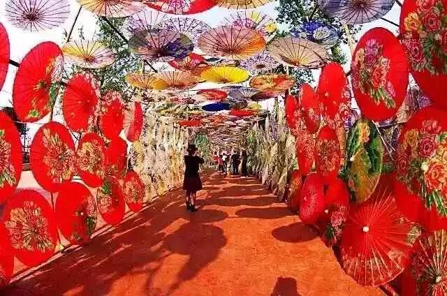油纸伞好似盛开在春天的花朵,走在油纸伞长廊下,来了就不想离开了。掏出手机随便一拍,你就是今天朋友圈里的国潮fashion Queen
