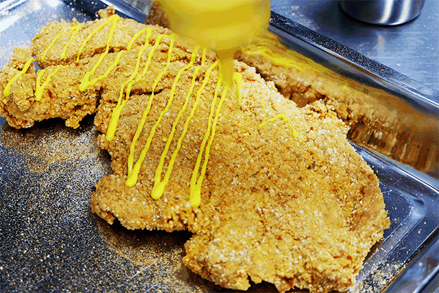 BIG是它的秘密武器,猴子终于找到了另一种拍照显脸小的方式,美国轰炸大鸡排!鸡排长度比脸还大,它是普通鸡排的两三倍!吃着它街拍,但别用它来比脸,猴子怕你 没脸比。