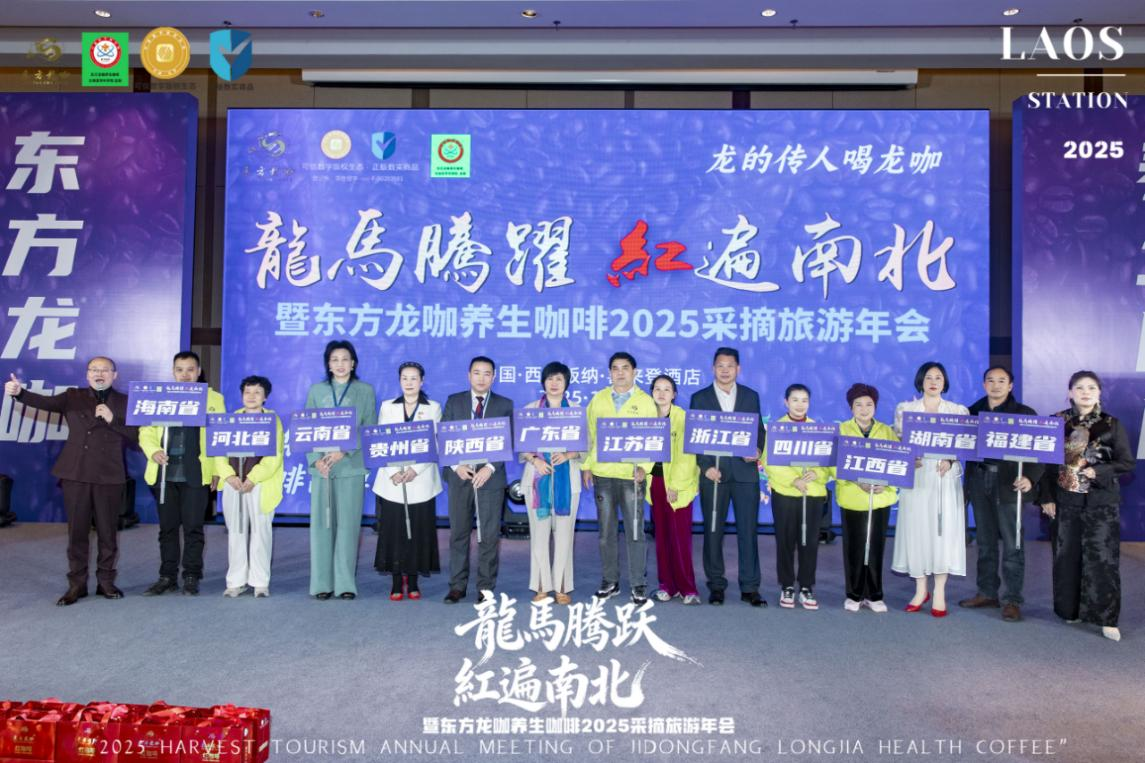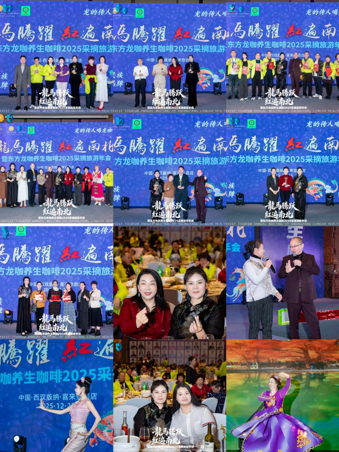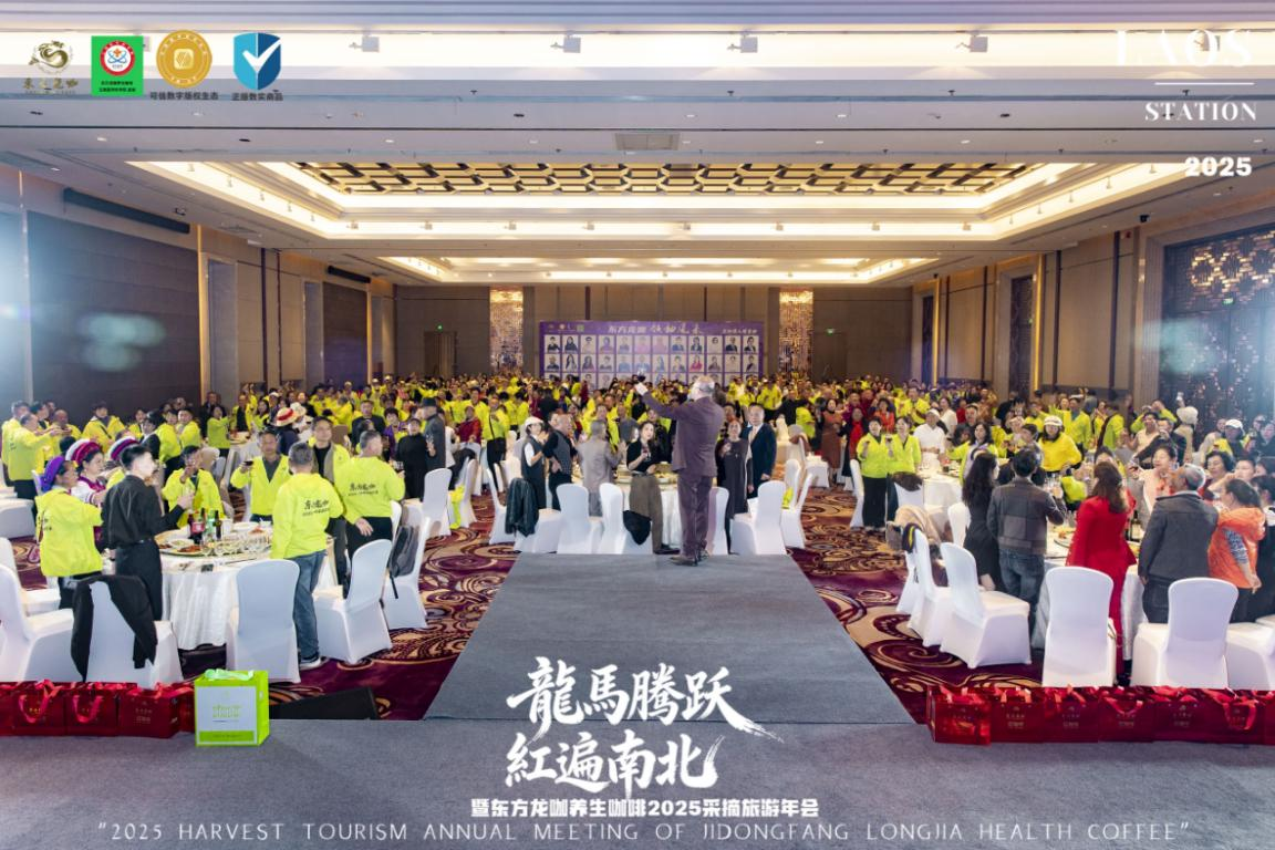 2025年12月25日,以“龙马腾跃 红遍南北”为主题的东方龙咖养生咖啡2025采摘旅游年会在西双版纳喜来登酒店盛大召开并圆满落幕。来自全国各地的数百位新老合作伙伴、行业嘉宾齐聚一堂,共同总结东方龙咖2025年发展硕果,擘画2026年渠道开拓与全国市场布局的宏伟蓝图。