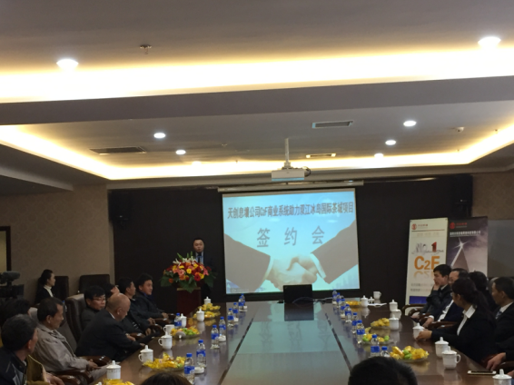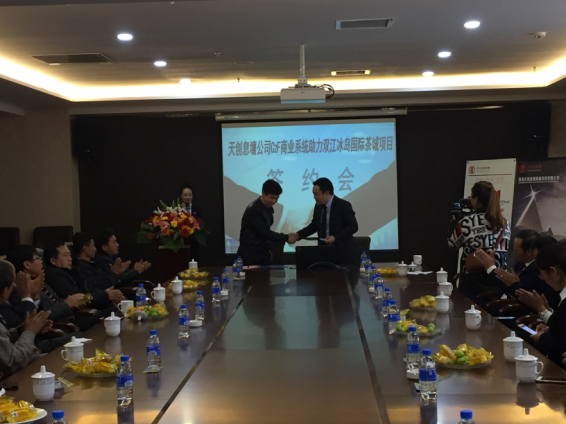 在各级党委政府和社会各界的重视关心下,双江望江投资有限公司与深圳天创息壤网络科技有限公司达成了战略合作协议,由天创息壤分次分批注资3000万元人民币,助力冰岛国际茶城项目开发,并于2017年1月11日在临沧市双江县华耀大酒店举行项目签约仪式。