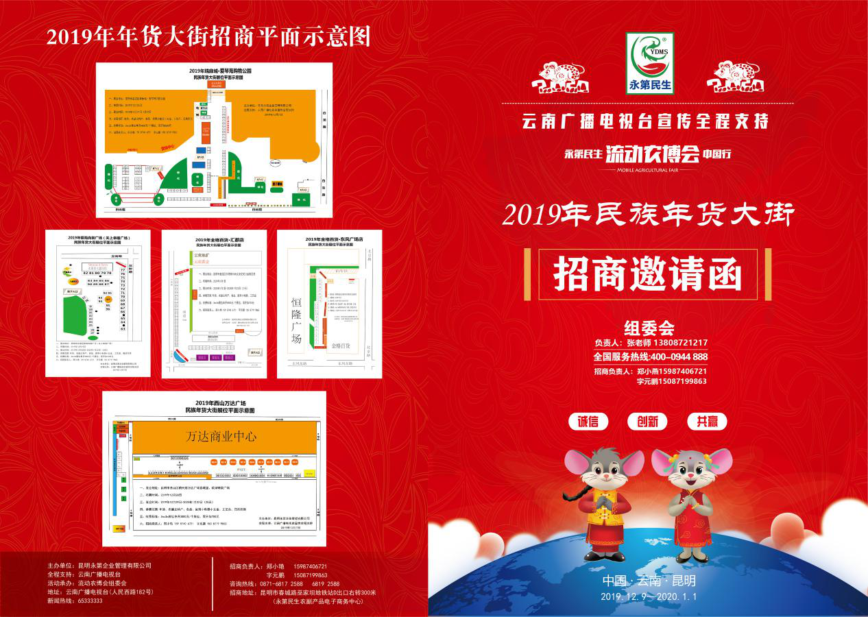 2019年12月27日,由云南广播电视台宣传全程支持的永第民生流动农博会中国行暨2019年“民生年货大街”项目将在瑞鼎城爱情海购物公园、万达广场、金格百货汇都店、大腾海鲜生鲜超市等多地启动,届时“永第民生年货大街”将为春城市民“金鼠拜年”!