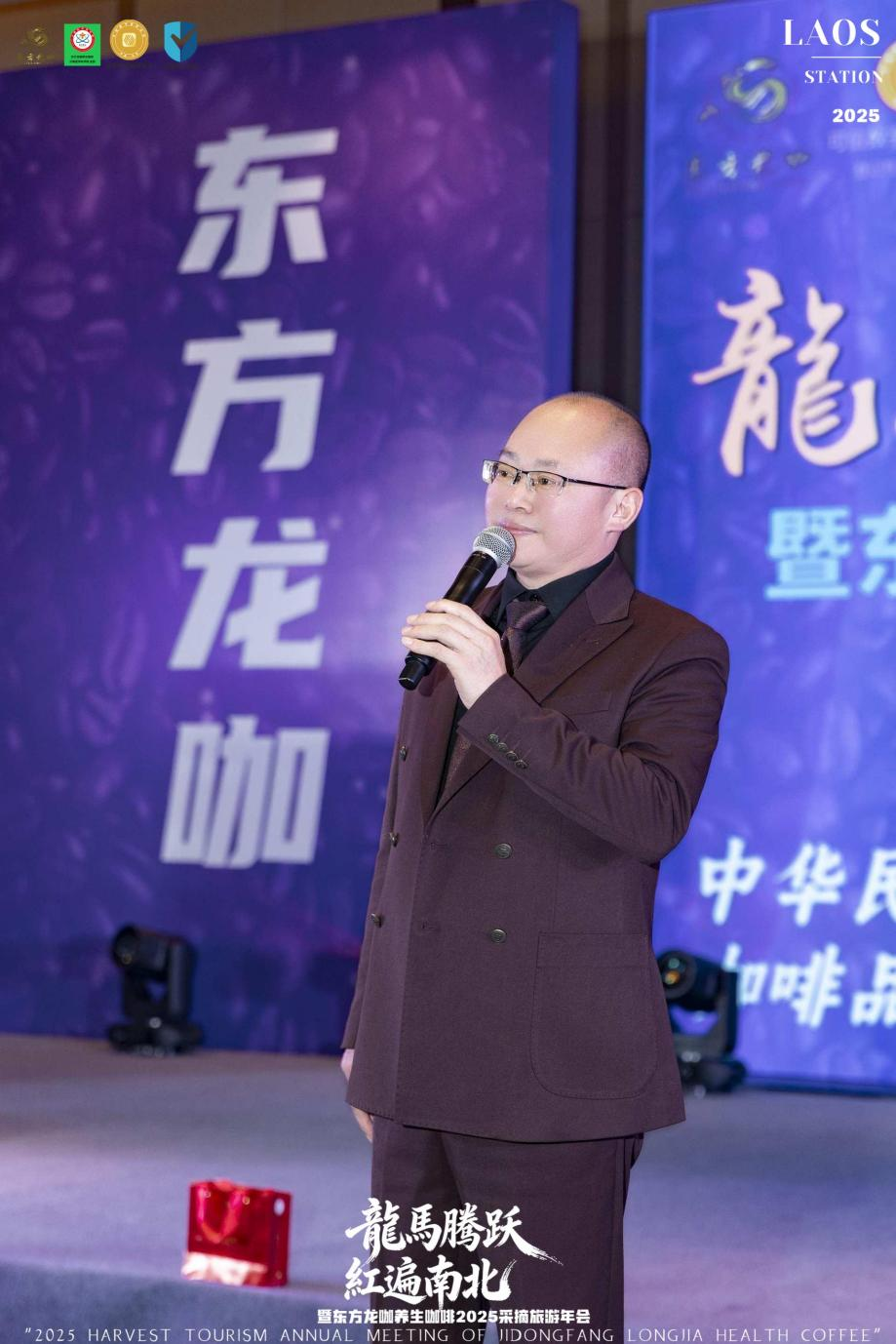年会现场气氛热烈高涨,亮点纷呈不断。东方龙咖公司卢董事长率先登台致欢迎词,并对2025年整体工作展开全面总结。从产品研发的创新突破、市场运营的亮眼战绩,到采摘旅游融合业态的落地深耕,一系列扎实丰硕的成果赢得现场伙伴的阵阵掌声与高度认可。